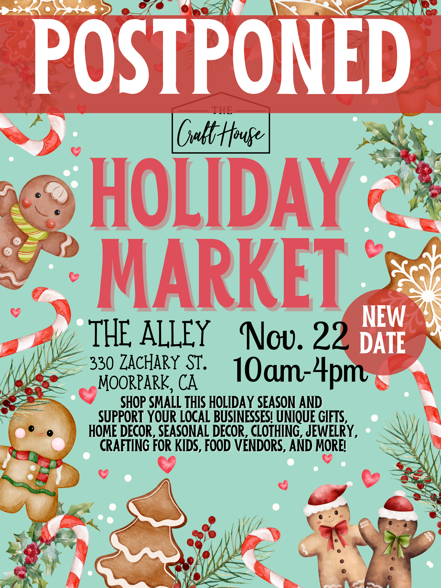 Due to weather, we had to postpone our Holiday Market! Please join us on Saturday, November 22nd from 10am-4pm!