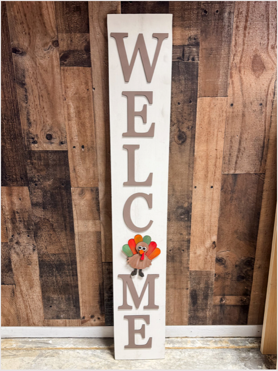 This listing is for the 44" Vertical Welcome project and includes your choice of 2 icons. Please select if you'd like to come to the event in store at 6:00pm on October 23rd or if you would like to order a Take + Make Kit to complete at home! Note this project is not available for shipping at this time.